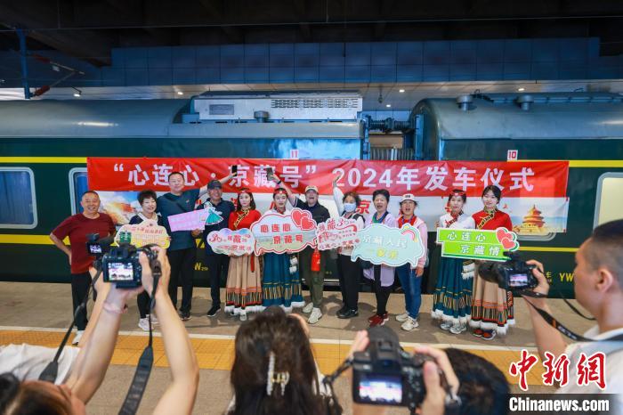 由文化和旅游部、國鐵集團指導(dǎo),北京援藏指揮部、拉薩市城關(guān)區(qū)人民政府等單位組織的2024年“心連心·京藏號”旅游專列在北京西站首發(fā)。