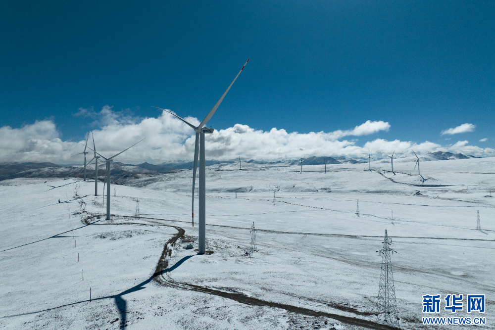 圖為西藏措美哲古風(fēng)電項目一處風(fēng)電機組(無人機照片)。新華網(wǎng) 旦增努布 攝