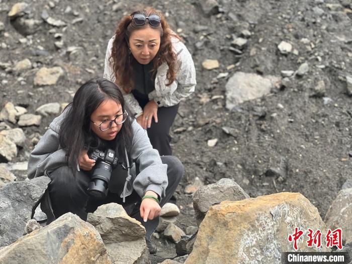 隨后,參訪者一行來到位于青海省海北藏族自治州祁連縣境內(nèi)的拉洞峽開展自然觀察活動。到達觀察點后,參訪者們被大量有著特殊肌理和紋路的化石所吸引,大家紛紛擦亮雙眼開始了一場“尋寶大賽”。據(jù)介紹,這些為形成于距今約有3億年的化石,也是解開祁連山地質(zhì)之謎的鑰匙。