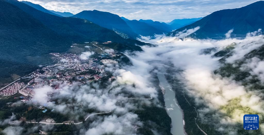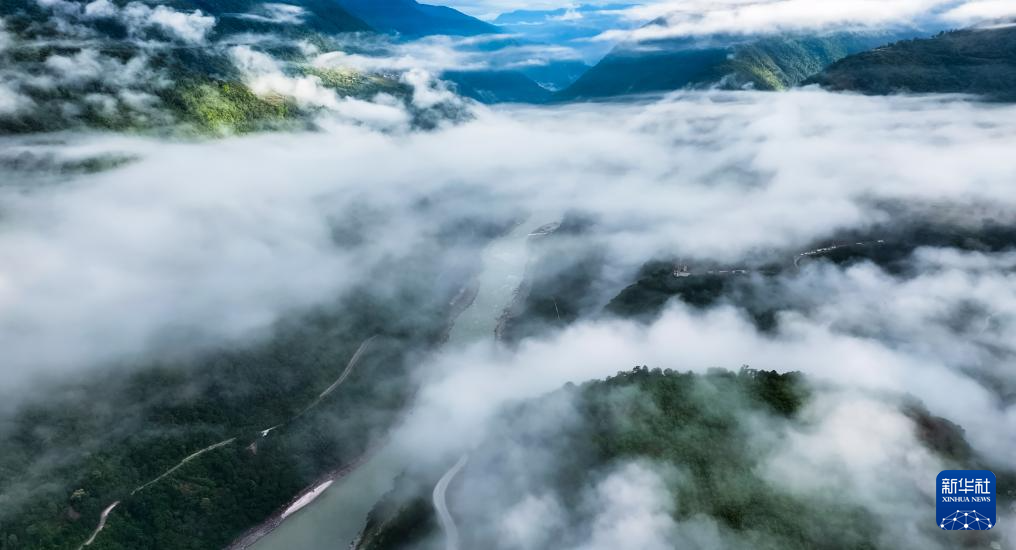 這是11月11日拍攝的墨脫縣云海景觀(無(wú)人機(jī)照片)。新華社記者 普布次仁 攝?