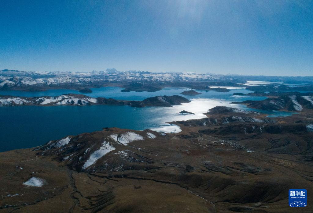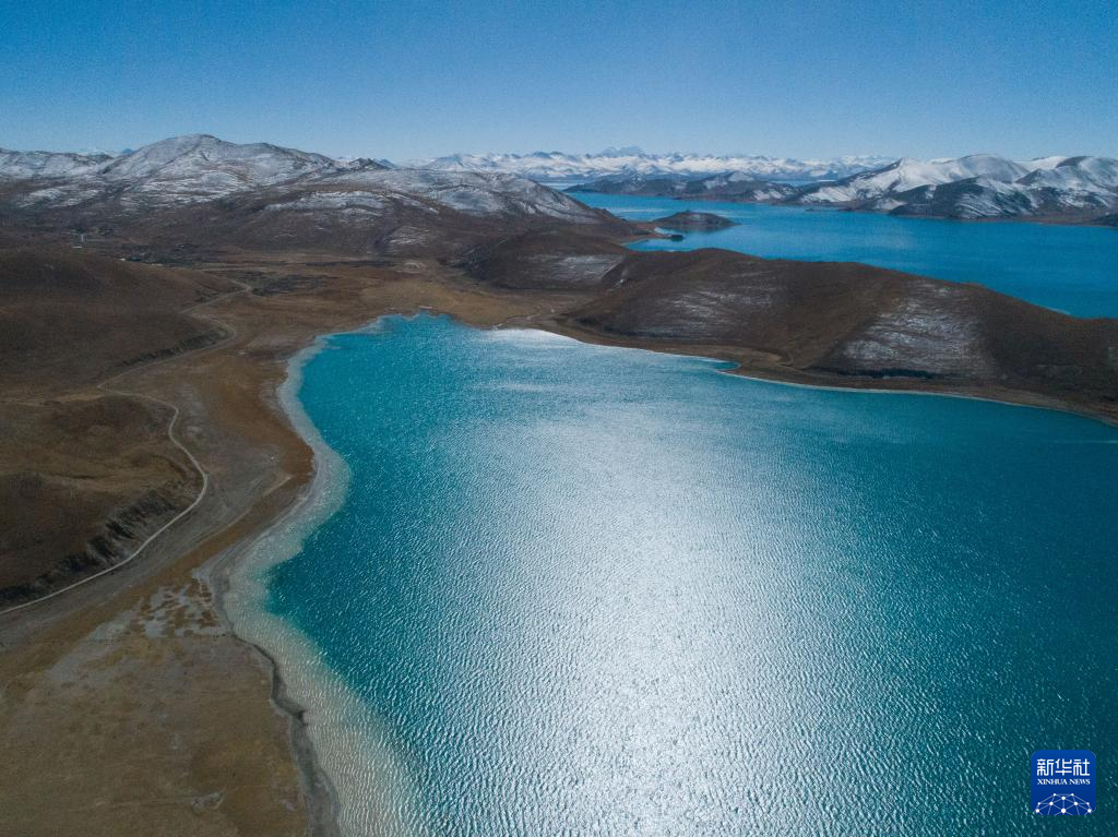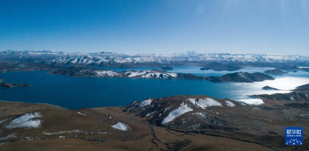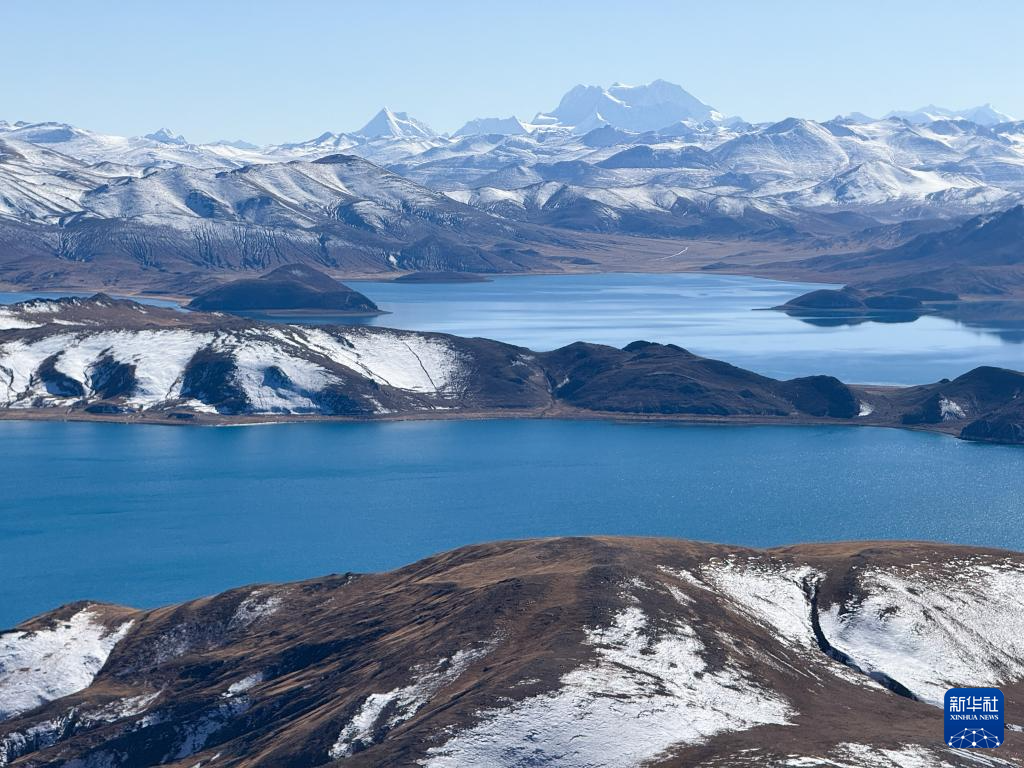 這是11月15日拍攝的羊湖及周邊雪山景色(無人機照片)。新華社記者 丁汀 攝