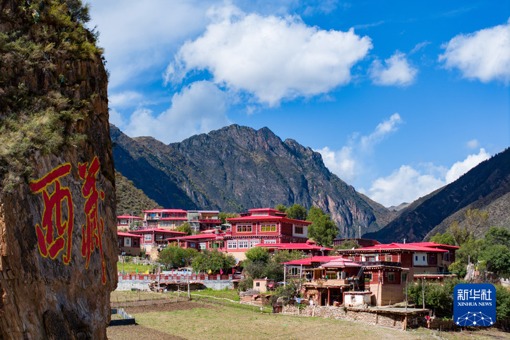 10月21日拍攝的“西藏解放第一村”昌都市江達(dá)縣崗?fù)写宀厥綐欠浚o(wú)人機(jī)照片)。旦增努布 攝
