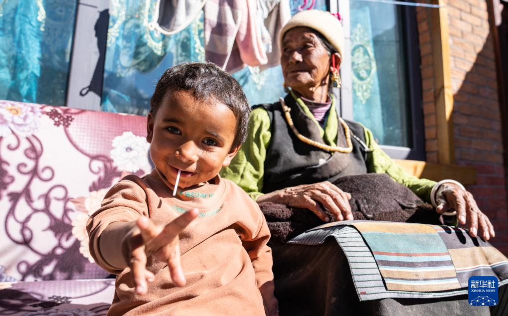 12月15日,達(dá)曼新村的孩子和老人在曬太陽。新華社記者 丁增尼達(dá) 攝