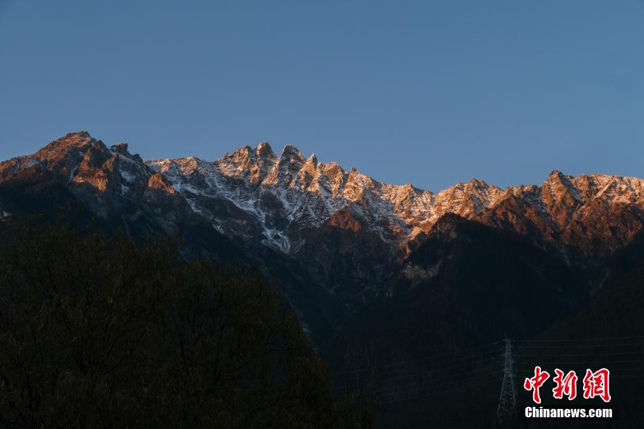 西藏自治區(qū)林芝市波密縣高山綿延、河流縱橫,擁有青藏高原最大的冰川聚集地,縣域境內(nèi)冰川超過2000座,被譽為“冰川之鄉(xiāng)”。圖為12月14日,金色的夕陽照在波密縣城周邊的雪山頂上。中新社記者 江飛波 攝