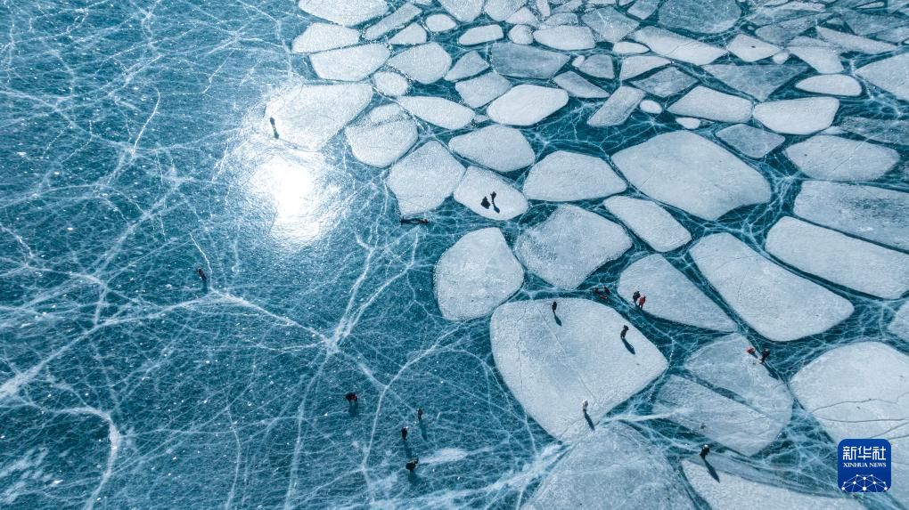 游客在恰央錯(cuò)結(jié)冰的湖面上游玩(1月26日攝,無(wú)人機(jī)照片)。新華社記者 丁增尼達(dá) 攝 ??