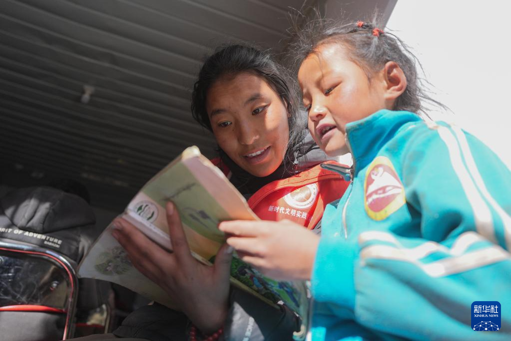 1月25日,在定日縣曲洛鄉(xiāng)熱木青村安置點,大學(xué)生志愿者在安置點在給孩子們輔導(dǎo)功課。新華社記者 晉美多吉 攝?