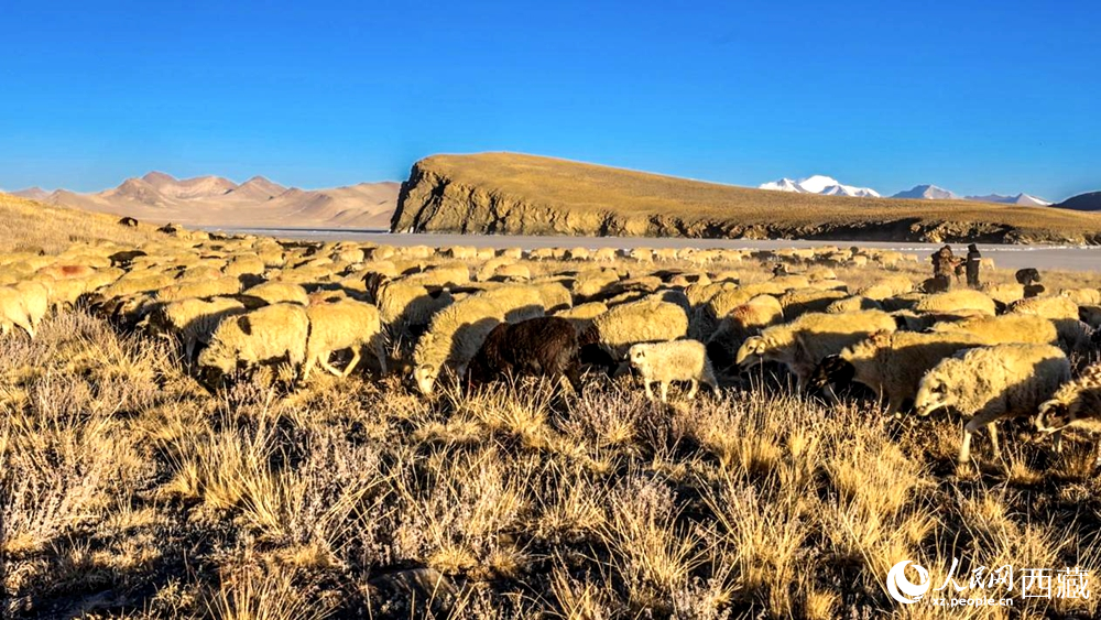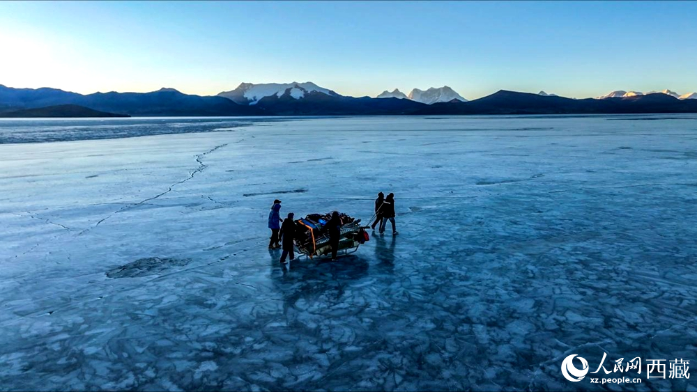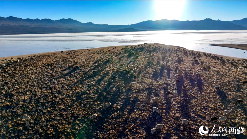 普莫雍錯(cuò)“冰上趕羊”,是當(dāng)?shù)啬撩袷来鄠鞯墓爬现腔邸C磕甓?,由于推瓦村海拔高、夏季短,草?chǎng)無法為羊群提供充足的過冬飼料。因此,每年高原最冷的時(shí)候,推瓦村牧民會(huì)把羊群趕到普莫雍錯(cuò)水草豐茂的湖心島,依靠島上的草料度過最寒冷的冬期。