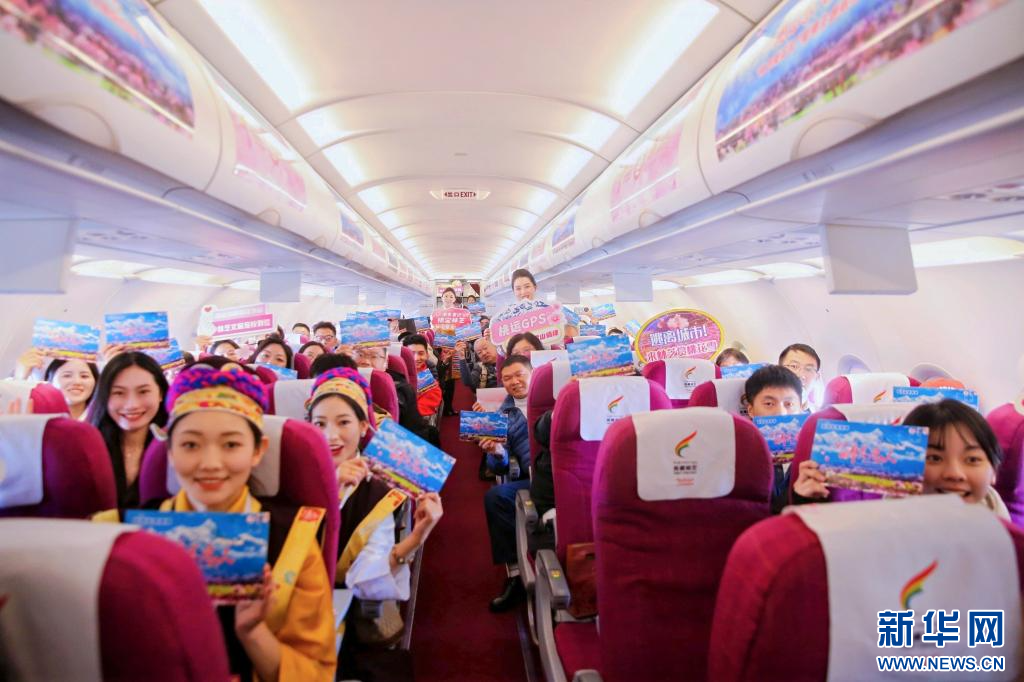 在首航旅途中,航班以“林芝桃花”為主題,載著來自全國各地的林芝“醉”美戀人、文旅達人、媒體代表及游客等100余人,開展了派發(fā)林芝來信、情侶云端告白、情歌合唱、首航蛋糕慶祝儀式等精彩互動環(huán)節(jié),并通過桃花仙子云端文旅推介讓嘉賓和游客們對林芝滿懷憧憬。