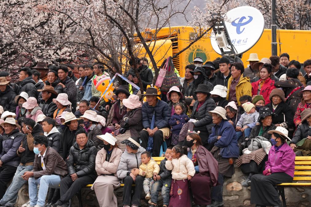 昌都市洛隆縣第十一屆俄西杏花文化旅游節(jié)開幕式現(xiàn)場的觀眾。新華社發(fā) (格桑赤列攝)