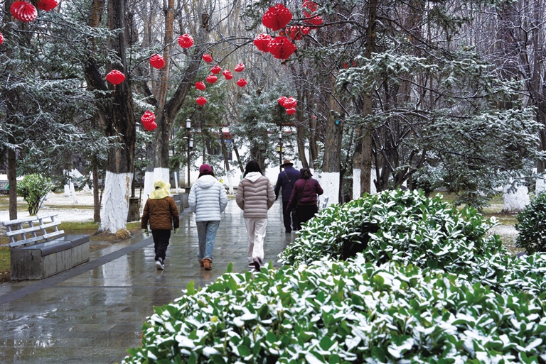四月,原該是杏花微雨的季節(jié),而拉薩卻意外地飄起了雪花。突如其來的一場春雪讓不少人重新裹上了厚厚的棉服,同時,也給這座古老的城市換上了與眾不同的“春裝”。