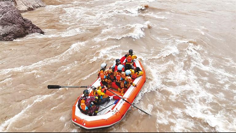 圖為游客正在體驗(yàn)驚險(xiǎn)刺激的漂流活動(dòng)。記者 平措郎加 董國峰 攝
