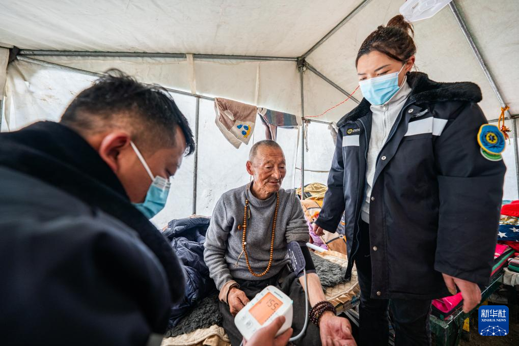 在那曲市索縣西昌鄉(xiāng),衛(wèi)生院醫(yī)務(wù)人員為蟲草采集點(diǎn)的牧民測(cè)量血壓(5月18日攝)。新華社記者 丁增尼達(dá) 攝 ??