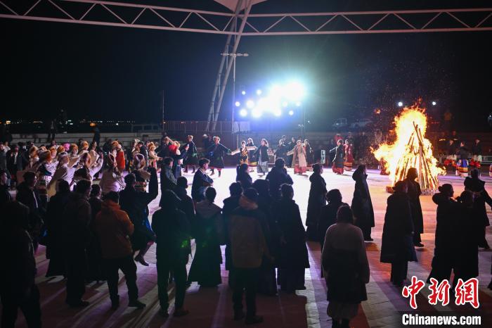 圖為“情定當(dāng)雄”篝火鍋莊晚會(huì)現(xiàn)場。中新社記者 貢嘎來松 攝