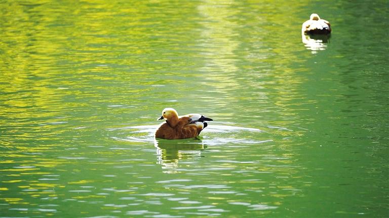 沿著蜿蜒的棧道,向濕地深處走去,清澈的湖水倒映著藍(lán)天、白云,仿佛置身于夢(mèng)幻般的境界。天空中不時(shí)有鳥兒飛過,水中的赤麻鴨自由自在地游來游去,赤麻鴨寶寶排成“一”字隊(duì)形,緊隨媽媽身后。這里不僅是鳥類棲息的天堂,也是攝影愛好者最佳的觀鳥地。