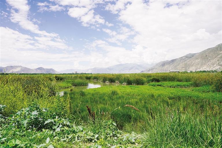 五月的拉薩,雨水濕潤(rùn)了整個(gè)大地。早晨的陽(yáng)光透過層層云霧,灑在郁郁蔥蔥的拉魯濕地上。她仿佛一位佳人,身披翠綠的薄紗,靜靜地佇立在那里,等待著人們與她在初夏撞個(gè)滿懷。