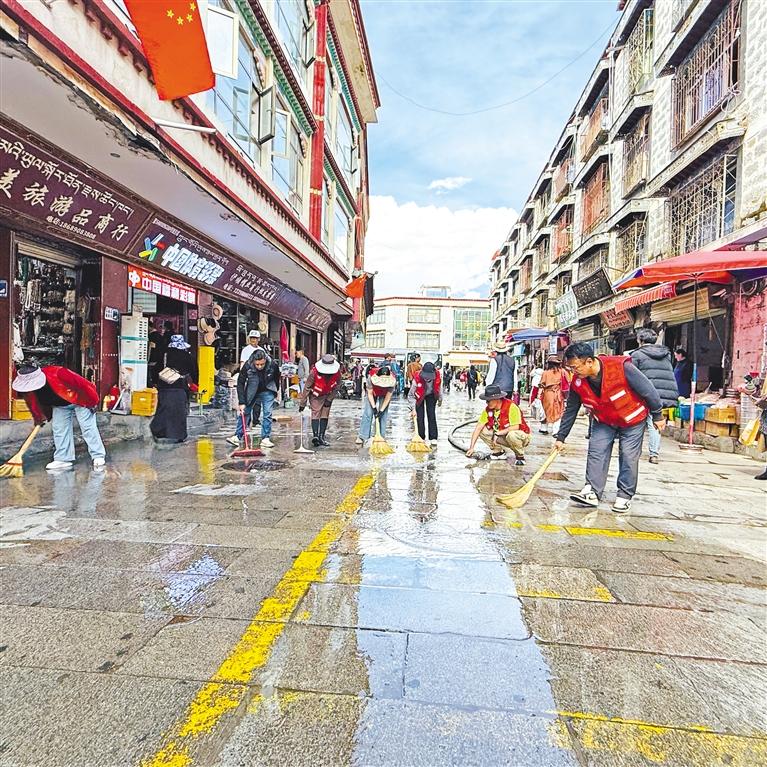 近日,拉薩市城關(guān)區(qū)八廓街道沖賽康社區(qū)黨總支開展“黨建引領(lǐng)聚合力,清潔家園促文明”環(huán)境整治活動。30余名黨員志愿者、駐社區(qū)工作隊員及網(wǎng)格員分工協(xié)作,手持清潔工具深入大街小巷,清理衛(wèi)生死角、鏟除墻面小廣告,并對廣場地面進(jìn)行高壓沖洗。活動以“黨建紅”引領(lǐng)“生態(tài)綠”,推動基層治理與文明城市創(chuàng)建深度融合,為社區(qū)居民營造整潔宜居的生活環(huán)境。記者 央金 攝