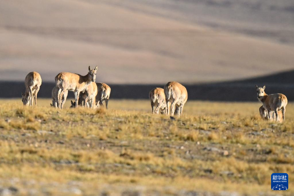 羌塘國家級自然保護(hù)區(qū)核心區(qū)繁殖遷徙路上的雌性藏羚羊群(6月10日攝)。新華社記者 姜帆 攝 ??