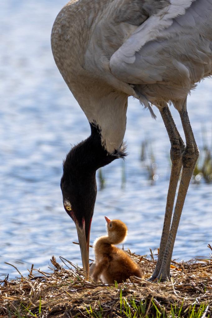 圖片中的這對黑頸鶴夫婦已連續(xù)8年在那曲市申扎縣申扎藏布濕地營巢育雛,并受到了普遍關(guān)注,每年都有攝影師前往拍攝。2024年,我們拍到了它們孵蛋的畫面。后來聽當?shù)匾氨T說,孵出的小鶴在兩個多月大的時候不幸夭折,這突如其來的打擊使得雌鶴抑郁了很長時間,有時會無緣無故地攻擊配偶,有時還會拔掉自己的尾羽,曾經(jīng)形影不離的夫妻倆很長時間不窩在一起休息……幸運的是,如今的它們已走出悲傷。2025年6月4日,我們又拍到了它們雛鳥出殼的瞬間,如今,新出生的小家伙正在茁壯成長。