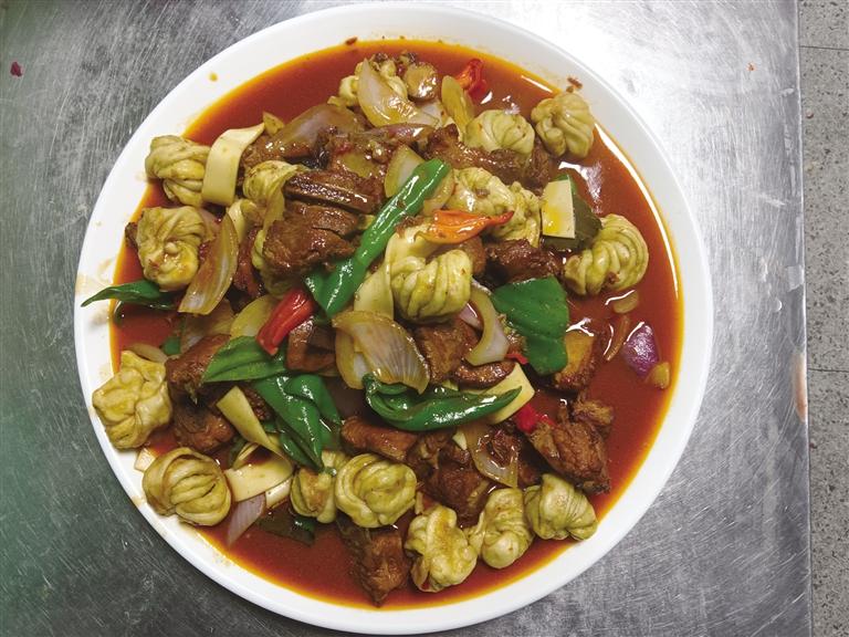 店內(nèi)生意紅火,但背后的辛苦只有王林生自己知道。“武威面食講究純手工,面團(tuán)得反復(fù)揉搓,做出來(lái)的面條才筋道爽滑。剛開(kāi)始學(xué)揉面,胳膊酸得抬不起來(lái),做出來(lái)的面也不對(duì)味?!蓖趿稚f(shuō),印象深刻的是,第一次在高原煮面條,面好像怎么也煮不透。后來(lái),他才明白高原的水只燒到八十多度就開(kāi)了,煮面要用高壓鍋。他不放棄,一遍遍地調(diào)整揉面的力道和醒發(fā)的時(shí)間,反復(fù)試驗(yàn)煮面的火候,甚至不惜成本從老家運(yùn)面粉過(guò)來(lái)。終于,那一碗正宗的“涼州大寬”從鍋中撈出,澆上自家熬制的濃香四溢的牛肉臊子,潑上一勺滾燙的辣油,撒上翠綠的香菜、蒜苗。這口扎實(shí)熱乎的武威風(fēng)味,竟成了不少高原異鄉(xiāng)人舌尖上的撫慰。