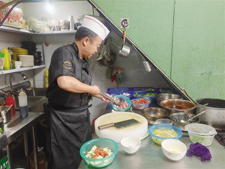 在事業(yè)發(fā)展過(guò)程中,王林生深知不斷學(xué)習(xí)的重要性。只有不斷學(xué)習(xí),才能取得進(jìn)步。一有空,他就和同行們交流新菜品、新創(chuàng)意,分享彼此的經(jīng)驗(yàn)和心得。晚上,等孩子們睡了,王林生也會(huì)坐在電腦前自學(xué)經(jīng)營(yíng)管理課程?!白霾惋嬀偷貌粩嗾垓v,不能原地踏步?!彼χf(shuō)。