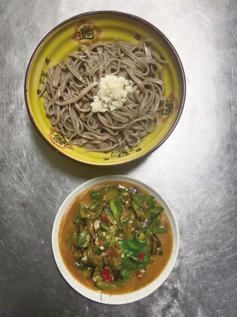 走進(jìn)麥香面莊,幾位客人熱烈地談?wù)撝ぷ骱蜕?,言語(yǔ)間滿(mǎn)是熱情。老板娘笑容滿(mǎn)面地招呼著客人。廚房?jī)?nèi),王林生則套著圍裙,燒水、下面、澆湯、加菜,動(dòng)作麻利得像練過(guò)千百遍。