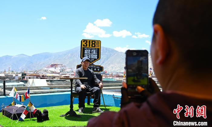 6月22日,在八廓古城,一家藏餐廳裝扮藏族特色的觀景臺(tái)吸引顧客拍照。中新社記者 趙朗 攝