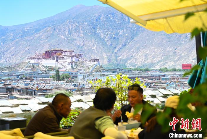 6月22日,拉薩市中心的一家觀景餐廳,可以眺望布達(dá)拉宮。中新社記者 趙朗 攝