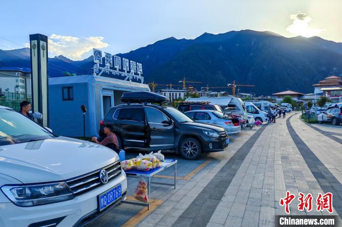6月26日傍晚,西藏林芝宇拓公園自駕露營地內(nèi)停放著來自中國各地的進(jìn)藏車輛,該營地設(shè)有兩處公共廚房和浴室,方便自駕游客休整。中新社記者 江飛波 攝
