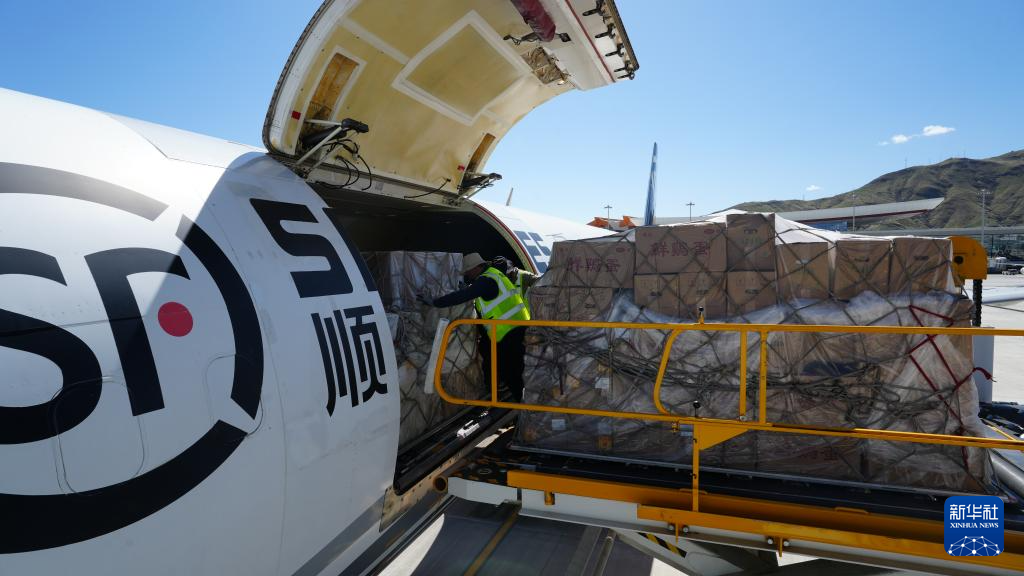 7月10日12點10分,一架載著西藏山南市瓊結(jié)縣小西紅柿、宏農(nóng)藏雞蛋,扎囊縣菜籽油、青稞等農(nóng)特產(chǎn)品的順豐全貨機(jī)從拉薩貢嘎國際機(jī)場起飛,前往湖北省鄂州市,這標(biāo)志著西藏首條貨機(jī)定期航線正式開通。一條連接西藏與華中地區(qū)的“空中金橋”由此貫通。