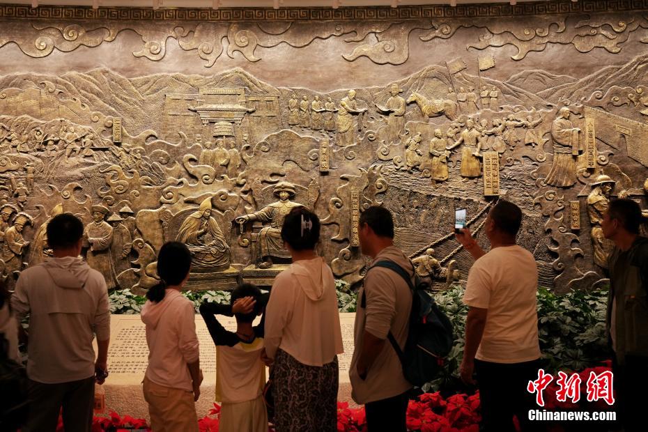 7月15日,在位于西藏拉薩的西藏博物館,觀眾參觀西藏歷史畫卷浮雕。據(jù)了解,西藏博物館設(shè)有基本陳列《雪域長(zhǎng)歌—西藏歷史文化展》《離太陽最近的人—西藏民俗文化展》,充分展示西藏地區(qū)歷史發(fā)展進(jìn)程與文化面貌。中新社記者 張祥毅 攝