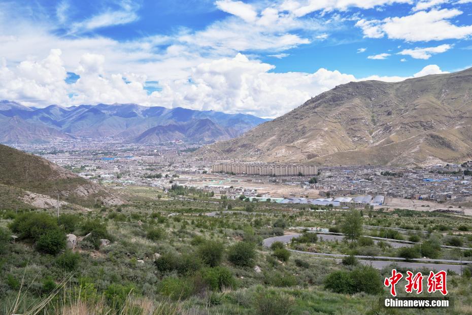 7月16日,從西藏拉薩娘熱溝俯瞰,南北山的綠色植被環(huán)抱拉薩城區(qū)。據(jù)了解,拉薩南北山綠化工程于2021年啟動,東起墨竹工卡縣尼瑪江熱鄉(xiāng),西至曲水縣茶巴拉鄉(xiāng),東西綿延近200公里,計劃完成國土綠化面積206.72萬畝,助力拉薩成為生態(tài)宜居的高原首府城市。中新社記者 張祥毅 攝