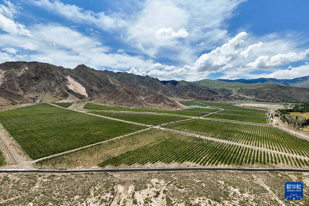 ?這是西藏扎囊縣的一處矮化蘋果種植園區(qū),采用現(xiàn)代農(nóng)業(yè)滴灌技術,使水資源得到高效利用,還可以用果樹防風固沙,讓沙化地變綠洲(無人機照片,7月19日攝)。新華社記者 李鑫 攝 ??