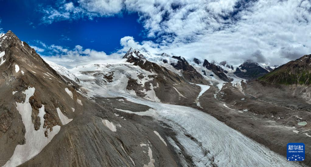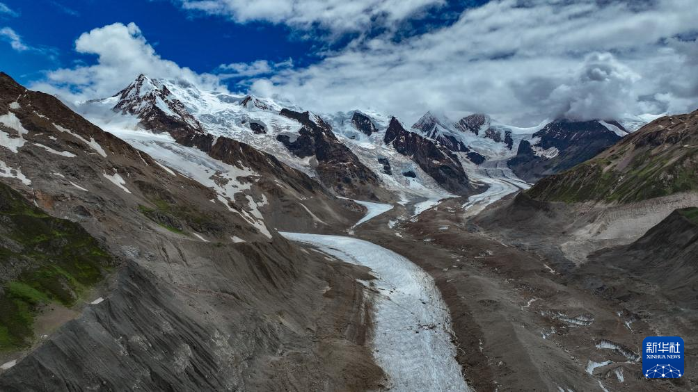 空中俯瞰祥格拉冰川(7月20日攝,無人機(jī)照片)。新華社記者 晉美多吉 攝