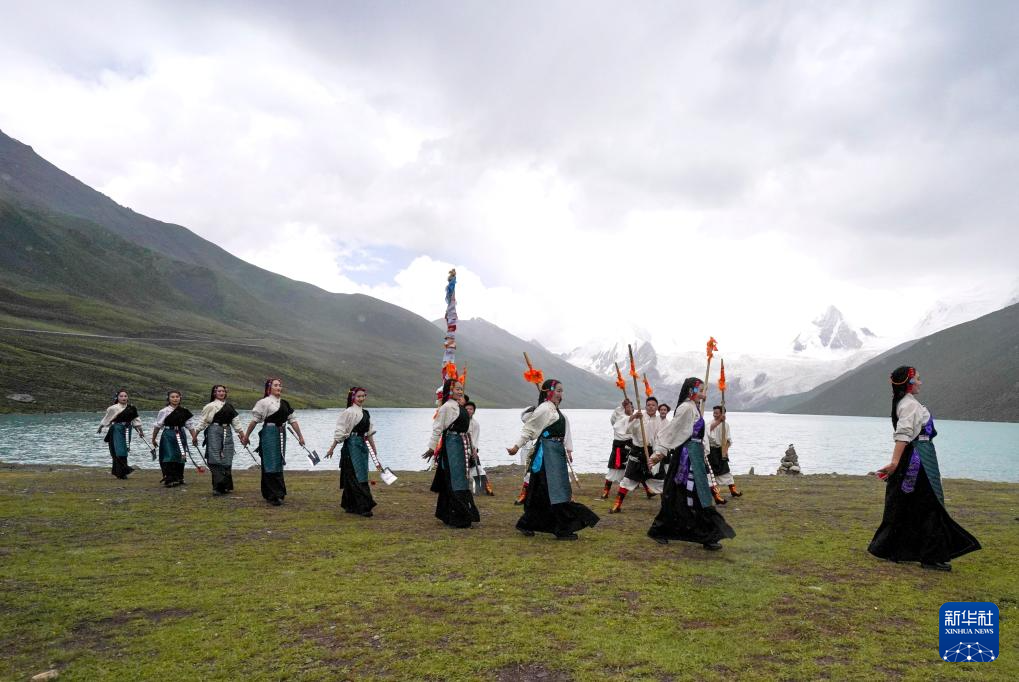 西藏那曲市比如縣藝術(shù)團的演員在薩普雪山景區(qū)為游客表演(7月19日攝)。新華社記者 晉美多吉 攝
