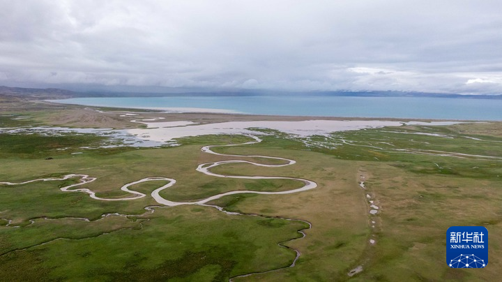 2025年7月22日拍攝的瑪旁雍錯(cuò)濕地一景(無(wú)人機(jī)照片)。新華社記者 旦增尼瑪曲珠 攝