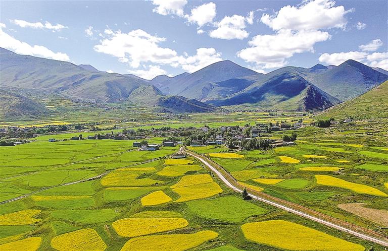盛夏時(shí)節(jié),驅(qū)車行駛在拉薩市墨竹工卡縣的鄉(xiāng)村公路上,兩側(cè)金黃的油菜花海與黝黑的柏油路相映成趣,滿載青稞的農(nóng)用車與色彩鮮艷的農(nóng)村客運(yùn)班車擦肩而過,勾勒出一幅流動(dòng)的豐收?qǐng)D景。這樣的景象在如今的西藏鄉(xiāng)村已成為常態(tài),一條條嶄新的公路正悄然改變著高原大地的面貌。