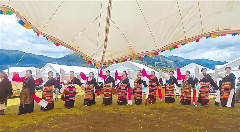 據(jù)了解,“耍壩子”活動是芒康縣及周邊地區(qū)藏族群眾的傳統(tǒng)民俗活動,是在豐收或節(jié)慶時舉辦的集體狂歡,融合歌舞、賽馬等元素,具有鮮明的地域文化特色和豐富的社會意義。活動場地多選在草原或高山草甸,參與者身著傳統(tǒng)服飾,圍成圓圈載歌載舞。近年來,“耍壩子”活動在傳承中創(chuàng)新,融入了不少新內(nèi)容。如,增加了賽馬、跑步、抱石頭等競技性兼具娛樂性的項目,并對活動進(jìn)行直播,推廣傳統(tǒng)文化等。如今,該項活動作為游客體驗的重要內(nèi)容,已逐漸成為芒康縣拉動地方旅游經(jīng)濟(jì)的重要力量。