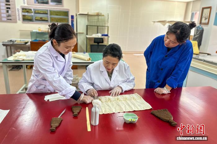 2025年7月9日,達(dá)珍(左一)在西藏大學(xué)古籍修復(fù)室為2024級中國古典文獻學(xué)(藏)學(xué)碩士研究生指導(dǎo)古籍修復(fù)。(受訪者供圖)