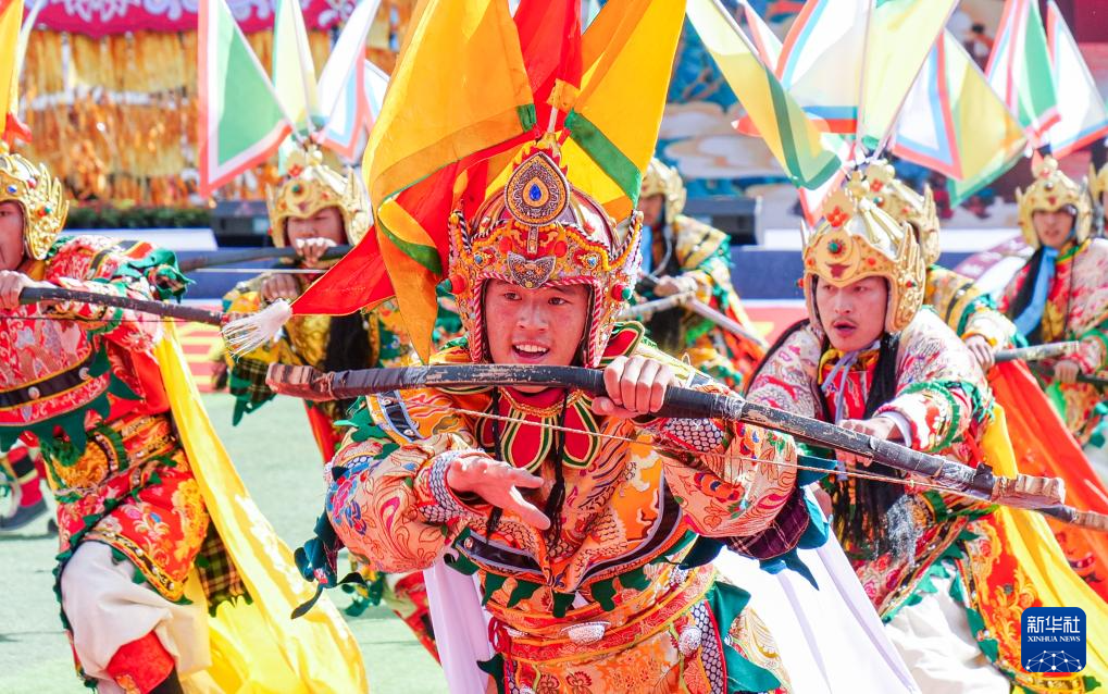 這是9月15日拍攝的開幕式上的格薩爾王舞蹈表演。新華社記者 格桑朗杰 攝