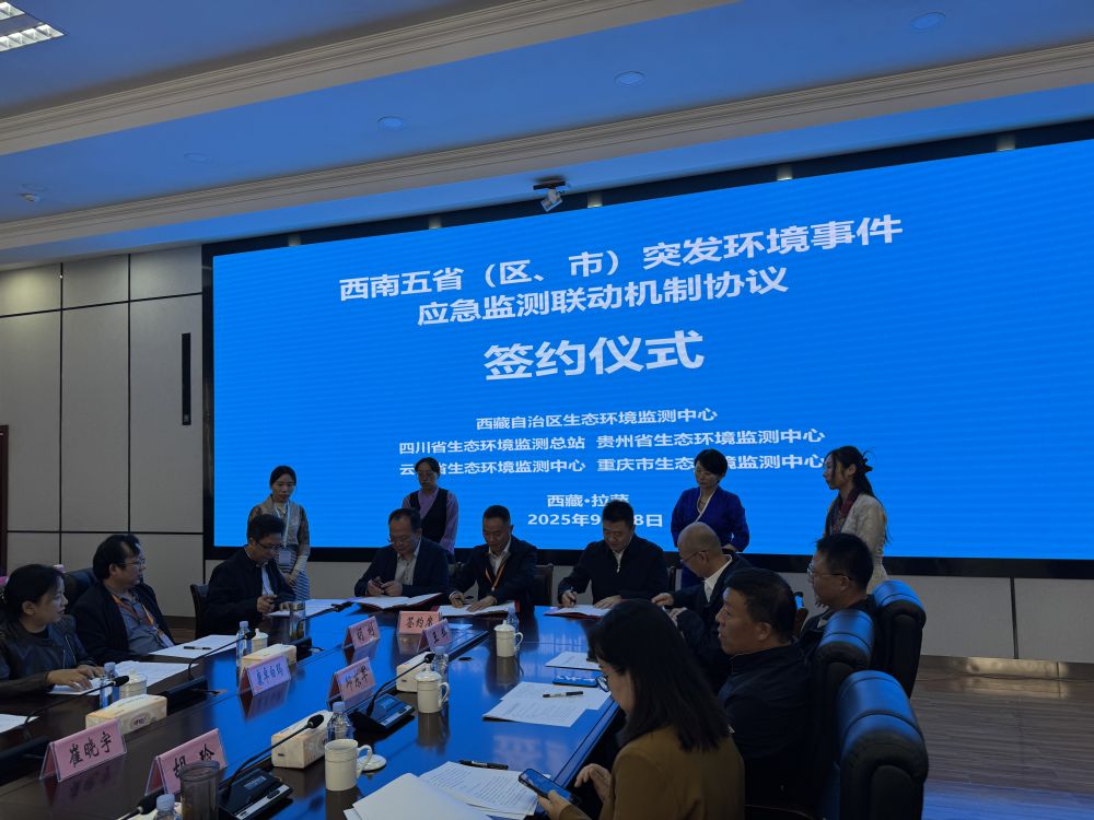 開(kāi)幕式上,裁判員代表與參賽選手代表分別作了表態(tài)發(fā)言。隨后,會(huì)議組織簽訂了《西南五?。▍^(qū)、市)突發(fā)環(huán)境事件應(yīng)急監(jiān)測(cè)聯(lián)動(dòng)機(jī)制協(xié)議》。西藏自治區(qū)生態(tài)環(huán)境監(jiān)測(cè)中心與重慶市、貴州省、四川省、云南省生態(tài)環(huán)境監(jiān)測(cè)機(jī)構(gòu)的代表共同簽署文件,旨在建立起應(yīng)對(duì)跨區(qū)域環(huán)境風(fēng)險(xiǎn)的協(xié)同協(xié)作機(jī)制。