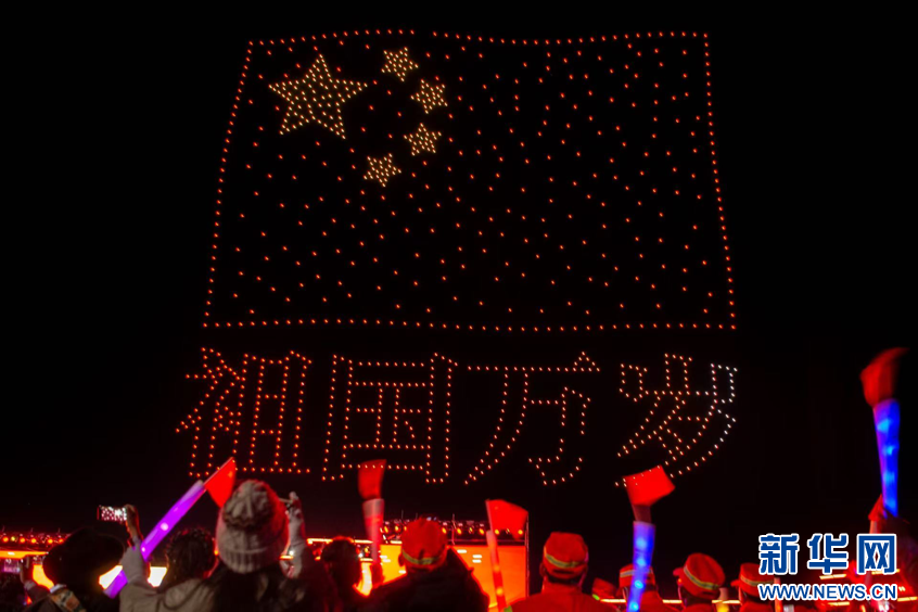 圖為第九屆象雄文化旅游節(jié)開幕式現(xiàn)場的無人機表演(9月26日攝)。新華網(wǎng) 柑丹鴦琦攝