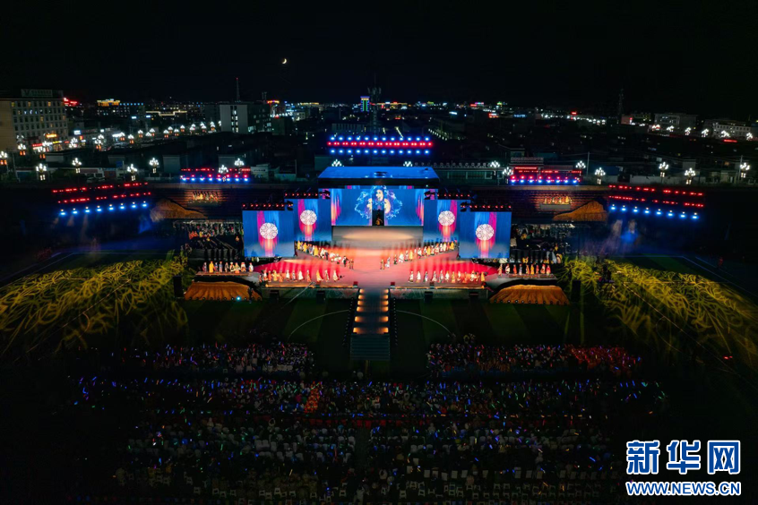圖為第九屆象雄文化旅游節(jié)開幕式現(xiàn)場(無人機照片,9月26日攝)。新華網(wǎng) 旦增努布攝 ??