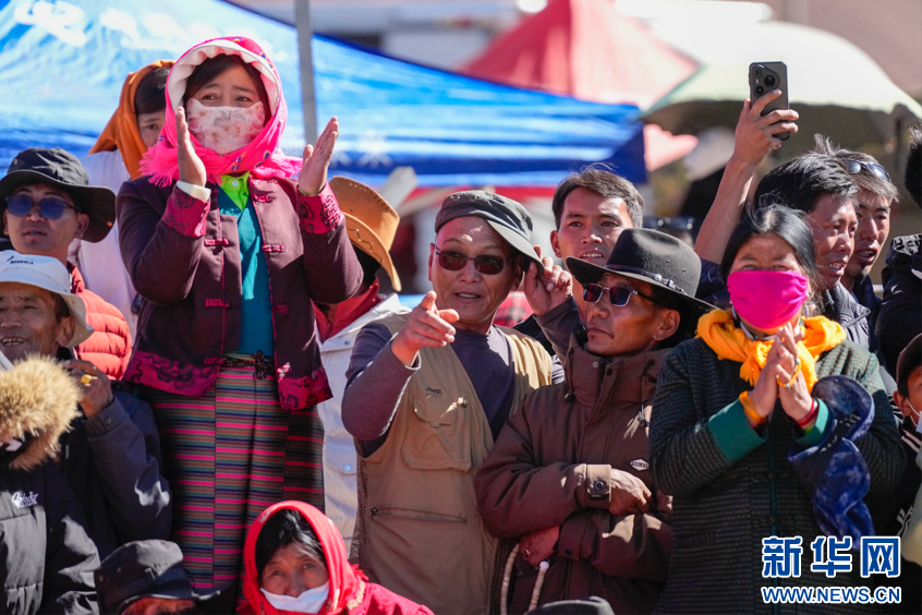 圖為第九屆象雄文化旅游節(jié)開幕式現(xiàn)場喝彩的群眾(9月26日攝)。新華網(wǎng) 柑丹鴦琦攝 ??
