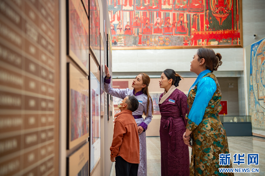 圖為群眾參觀“鐫刻高原 繪見古今”阿里巖畫與壁畫藝術(shù)特展(9月26日攝)。新華網(wǎng) 旦增努布攝