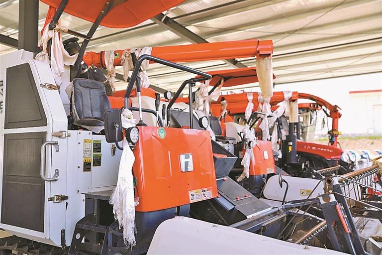 圖為停放在克日村機械庫里的現(xiàn)代化農(nóng)機。記者 尼瑪扎西 攝