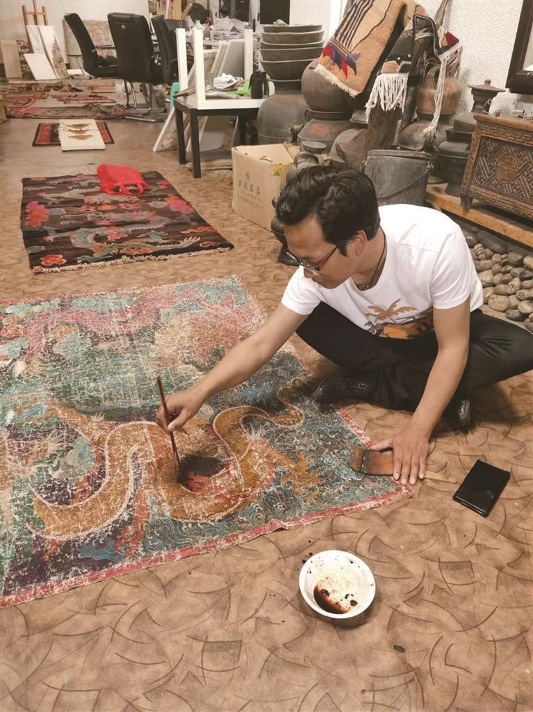 呷絨尼瑪正在從事藝術(shù)創(chuàng)作。圖由受訪者提供