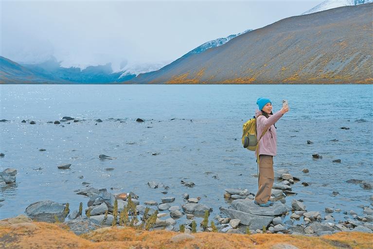 圖為游客在薩普景區(qū)自拍留念。記者 萬(wàn)靖 攝
