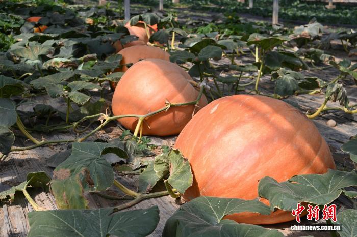 圖為墨竹工卡縣現(xiàn)代化農(nóng)業(yè)示范園里種植的巨型南瓜。中新社記者 貢嘎來(lái)松 攝
