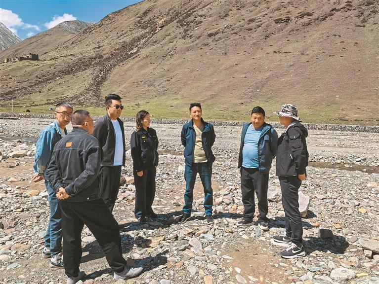 圖為山南市生態(tài)環(huán)境局執(zhí)法人員在砂石場(chǎng)檢查。記者 巴桑旺姆 攝