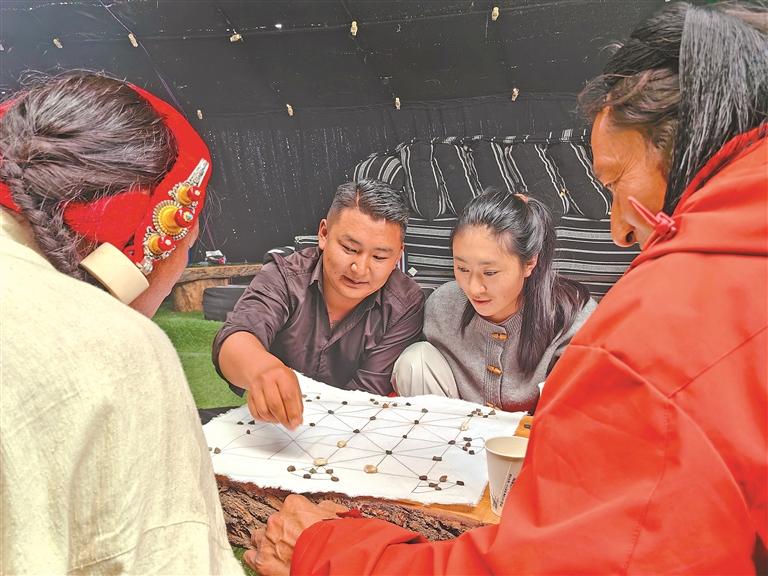 圖為賽馬節(jié)上,人們體驗(yàn)藏棋文化。